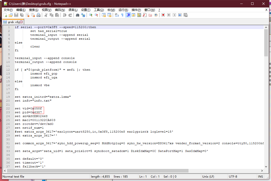 修改方框中圈起来的pid和vid数值。需要注意的是,需要保留最前面的两位,【0x】只修改后面的字符就可以了。