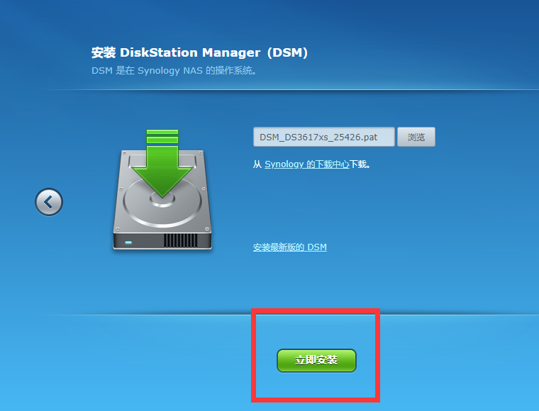 此时,不能直接点击立即安装。黑群晖和白裙最大的区别就是,白裙可以直接升级,安装系统。但是黑裙是需要有对应的引导文件才可以的。