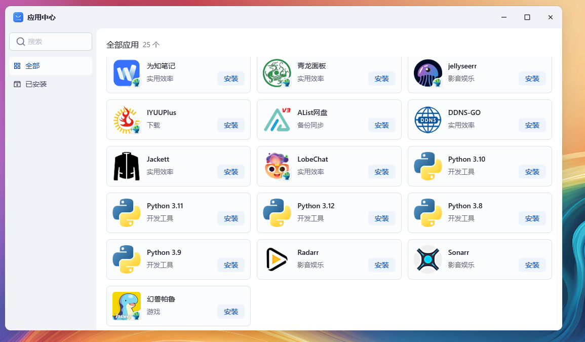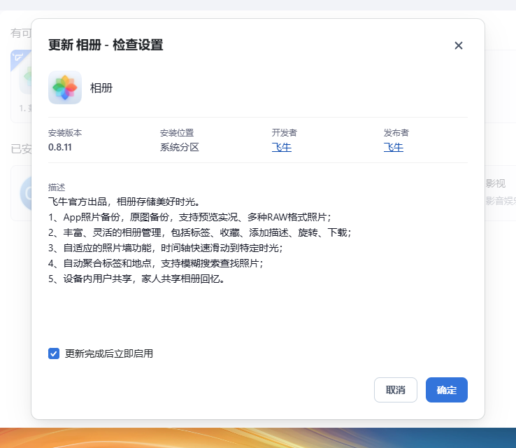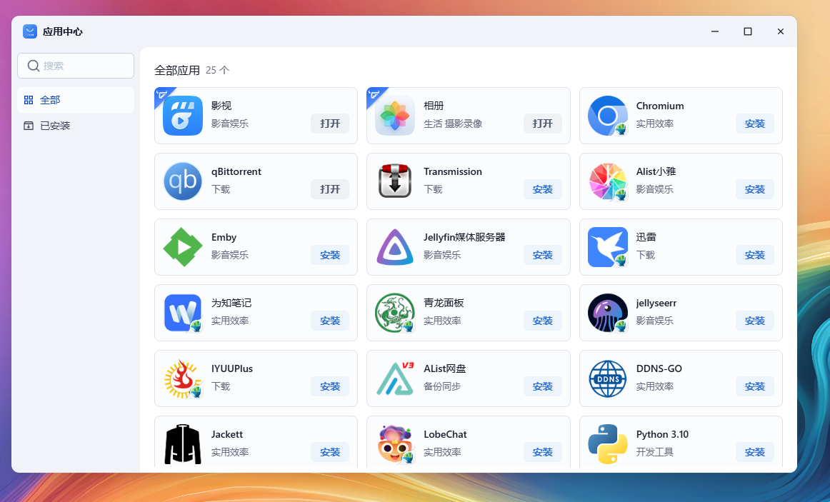 缺点:1、部分功能不可用;2、功能缺失,例如没有发送通知的渠道(设置邮件发送nas告警通知等);3、应用中心只能安装官方通道的应用,不能像群晖那样添加社群软件源,官方软件较少;
