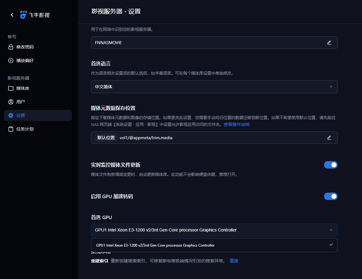 不过可能我的硬件问题,部分视频播放的时候无法通过网页端播放(网页端是nas解码),但是手机端是可以正常播放的。