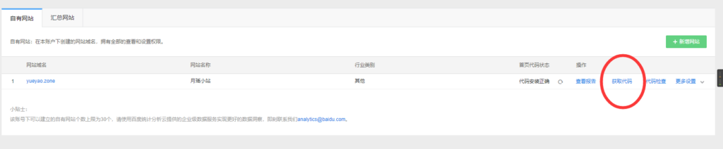 注册好百度账号之后,选择页面顶端的管理选项。点击新增网站,这里以月瑶小站为例。