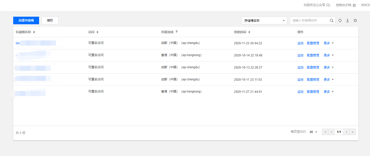 创建好了存储桶,去API密钥管理获取SecretId,SecretKey,找到你创建的存储桶,选择配置管理,