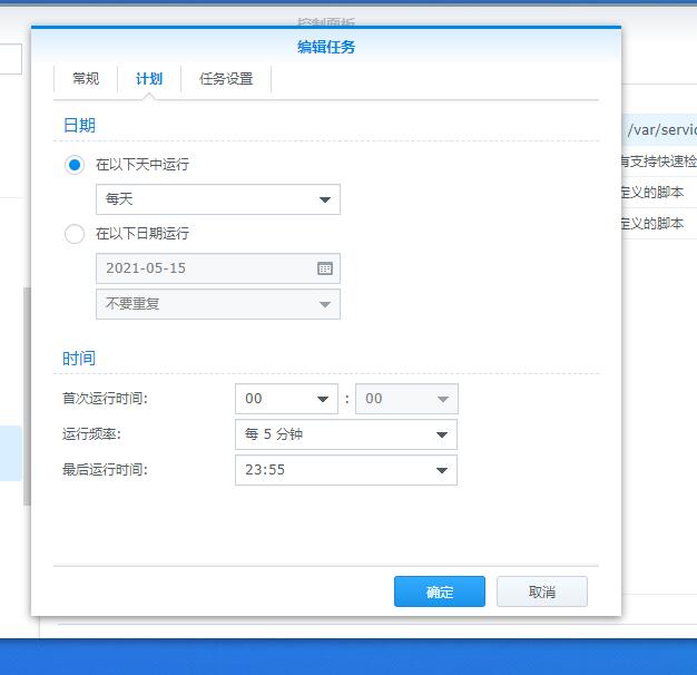 在群晖系统中设置一个计划任务即可,每五分钟执行一次。