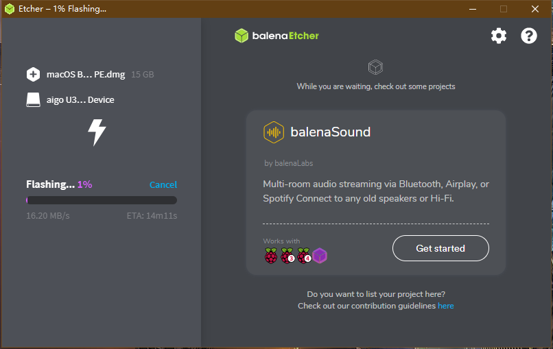 需要注意的是,运行etcher的时候,需要使用管理员权限运行。不然会出现写入报错的情况。