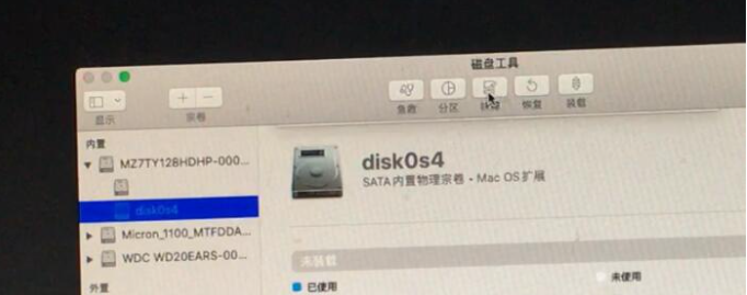 选择你要安装系统的硬盘。点击窗口顶部的抹除。
