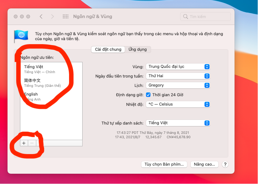点击左下角那个圈里面的【+】号就可以添加语言。【-】号删除语言。我们把那个奇怪的越南文字删掉,添加一个中文简体语言。(如果只剩下最后一种语言的话,那么是无法删除的,只能添加)